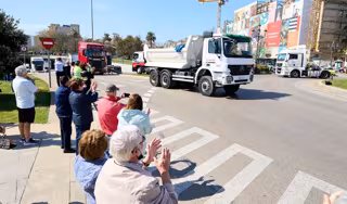 Varias personas apoyan a una marcha de camiones convocada desde el polígono de Raos hasta el Centro Botín, durante el undécimo día de paro nacional de transportistas, a 24 de marzo de 2022, en Santander, Cantabria (España). Se trata de un paro indefinid - Juan Manuel Serrano Arce - Europa Press