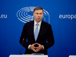 Archivo - HANDOUT - 18 April 2023, France, Strasbourg: Valdis Dombrovskis, European Commissioner for Trade, speaks during a press conference on the reform of the bank crisis management and deposit insurance (CMDI) framework. Photo: Valentine Zeler/Europ - Valentine Zeler/European Commiss / Dpa - Archivo