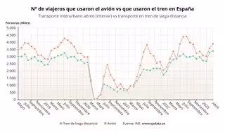 Por último, la larga distancia aumentó un 25,9% en el transporte por autobús y un 21,8% en el ferrocarril. Dentro de este último, Alta Velocidad creció un 31%.