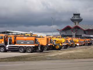 Entre ellos destacan, por ejemplo, 22 vehículos medidores de coeficiente de rozamiento, 21 camiones con cuchilla quitanieves con esparcidor de fundente, 3 camiones esparcidores de fundente líquido y 17 barredoras (con cuchilla quitanieves o sopladoras), así como camiones contraincendios, tractores y vehículos 4x4 equipados con cuchillas quitanieves.