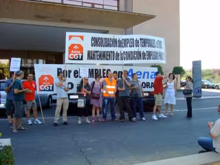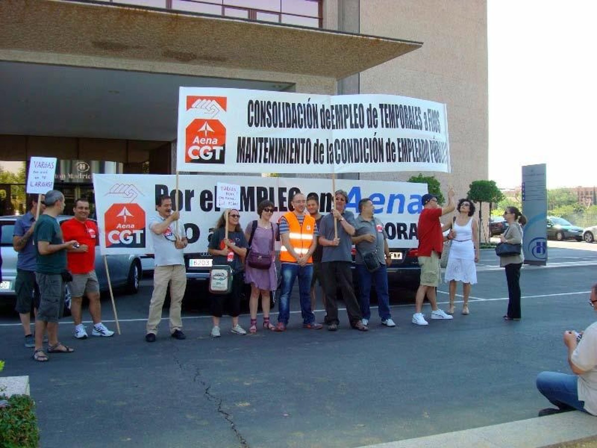 Según ha informado la Confederación General del Trabajo (CGT) en un comunicado, la concentración ha coincidido con la reunión en dicho establecimiento del presidente de AENA, José Manuel Vargas, con todos los directores de aeropuertos y jefes de división.