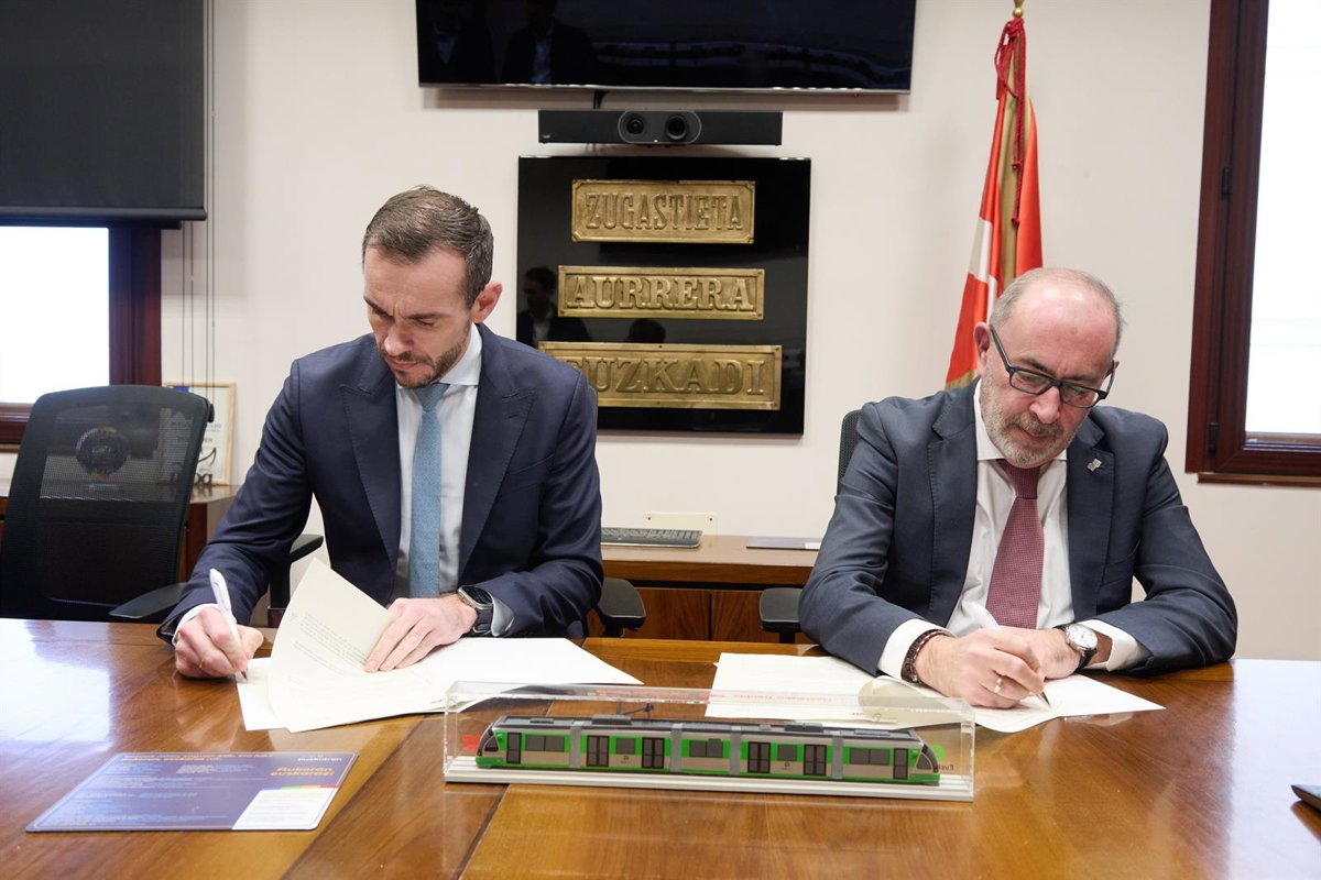 Durante el acto del acuerdo, han destacado que los nuevos convoyes suponen una inversión de 48.801.000 euros y deberán ser entregados progresivamente entre 2028 y 2029.
