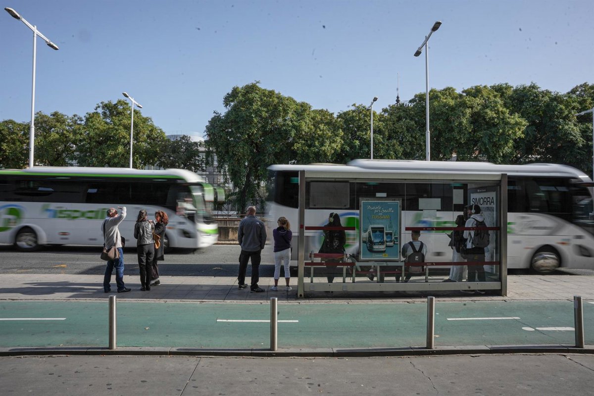 Archivo - Varias personas esperan en una parada de autobús - María José López - Europa Press - Archivo