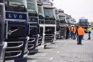 Archivo - Varios transportistas y camiones estacionados en las inmediaciones del Wanda Metropolitano - Gustavo Valiente - Europa Press - Archivo
