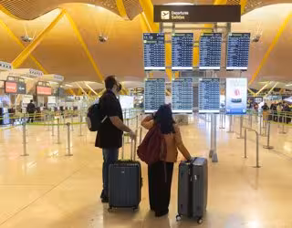 Varias personas con mascarilla el día que comienza la huelga de los trabajadores de handling de Iberia - Eduardo Parra - Europa Press