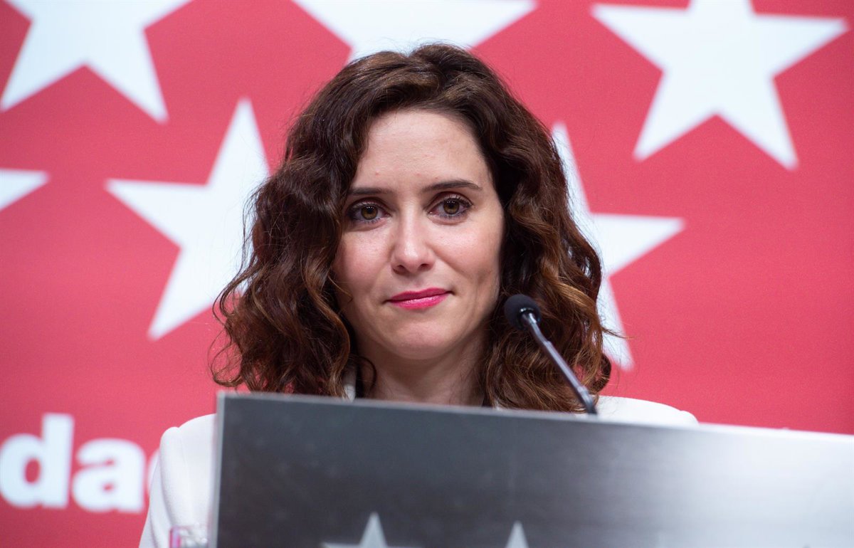 La presidenta de la comunidad de Madrid, Isabel Díaz Ayuso, durante la rueda de prensa este miércoles. - Gustavo Valiente - Europa Press