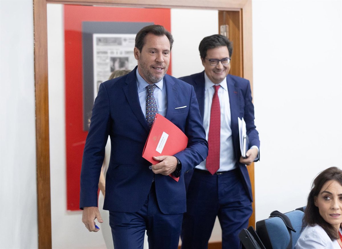 El ministro de Transportes y Movilidad Sostenible, Óscar Puente (i), y el ministro de Transformación Digital y Función Pública, Óscar López (d), a su llegada a una rueda de prensa tras el Consejo de Ministros - Eduardo Parra - Europa Press