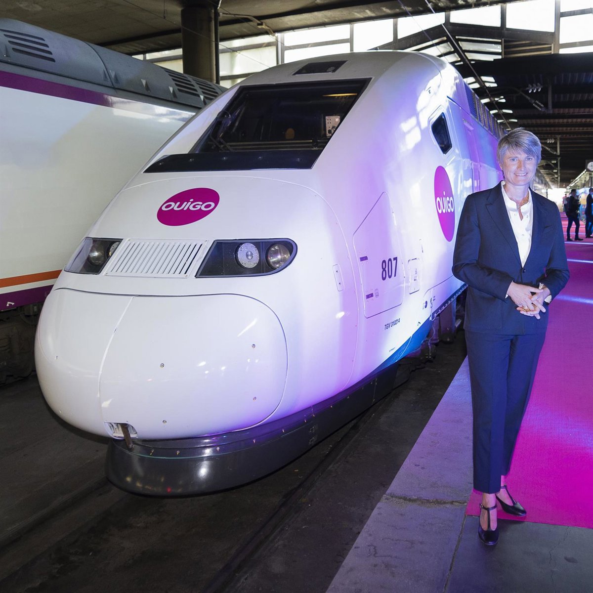 La directora de Ouigo en España, Hélne Valenzuela, en un andén de Atocha junto a uno de los modelos de tren con los que la empresa iniciará sus operaciones en España - OUIGO - Archivo