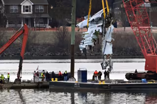 Archivo - 03 February 2025, US, Arlington: Wreckage of an American Airlines plane is lifted from the Potomac River during recovery efforts near Reagan National Airport in Arlington. - Carol Guzy/ZUMA Press Wire/dpa - Archivo