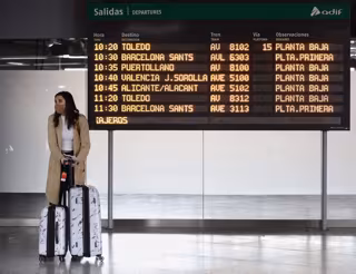 Una mujer, con maletas, junto a un panel de salidas con diferentes destinos en Atocha - Eduardo Parra - Europa Press