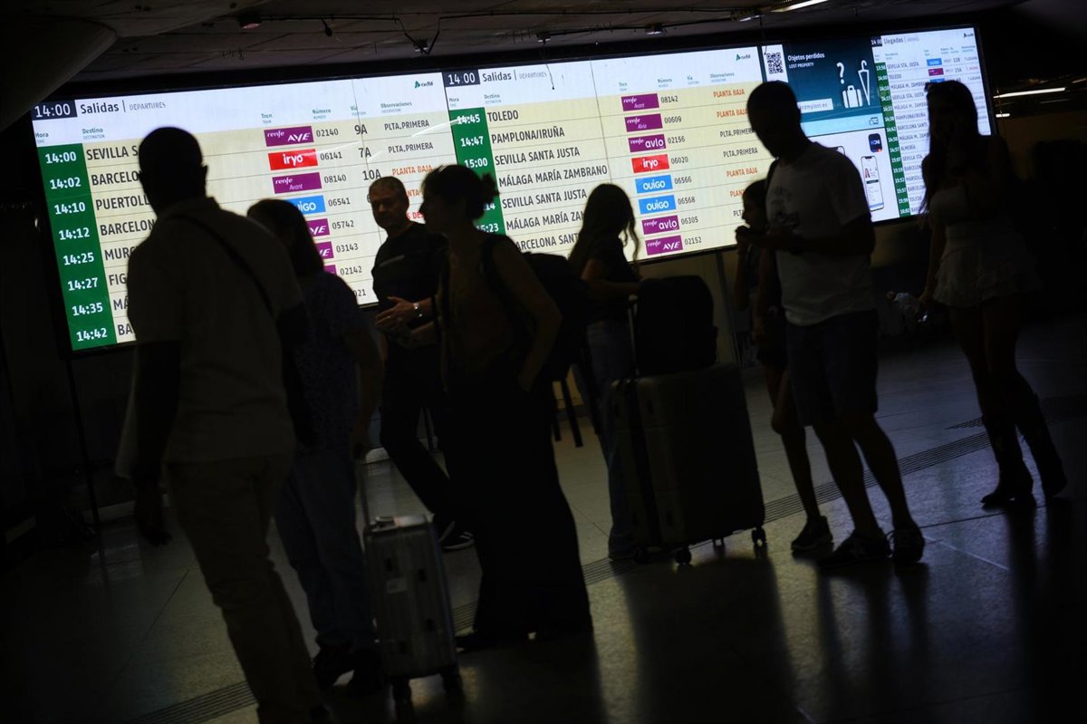 Varias personas observan las pantallas informativas en la Estación de Madrid - Puerta de Atocha - Almudena Grandes. a 4 de septiembre de 2025, en Madrid (España). - Fernando Sánchez - Europa Press