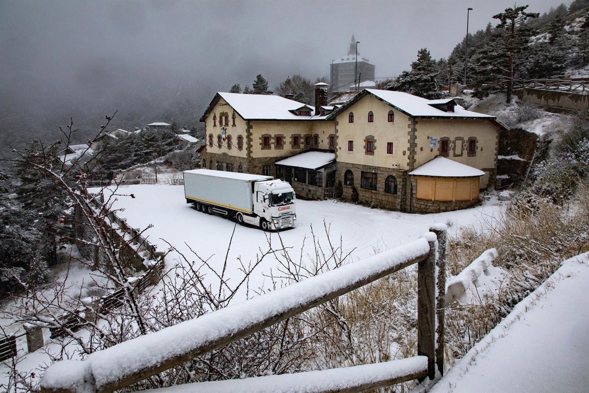 Archivo - Un camión parado en el Puerto de Navacerrada, a 2 de diciembre de 2025, en Madrid - Rafael Bastante - Europa Press - Archivo