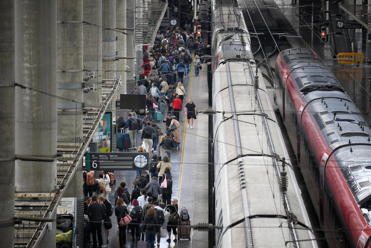 Decenas de personas en un andén de la estación Puerta de Atocha-Almudena Grandes, en Madrid (España) - Fernando Sánchez - Europa Press