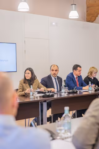La consellera de Interior y Seguridad Pública, Núria Parlon; el conseller de Presidencia, Albert Dalmau, y el conseller de Agricultura, Òscar Ordeig en la reunión con alcaldes por la PPA - PRESIDENCIA
