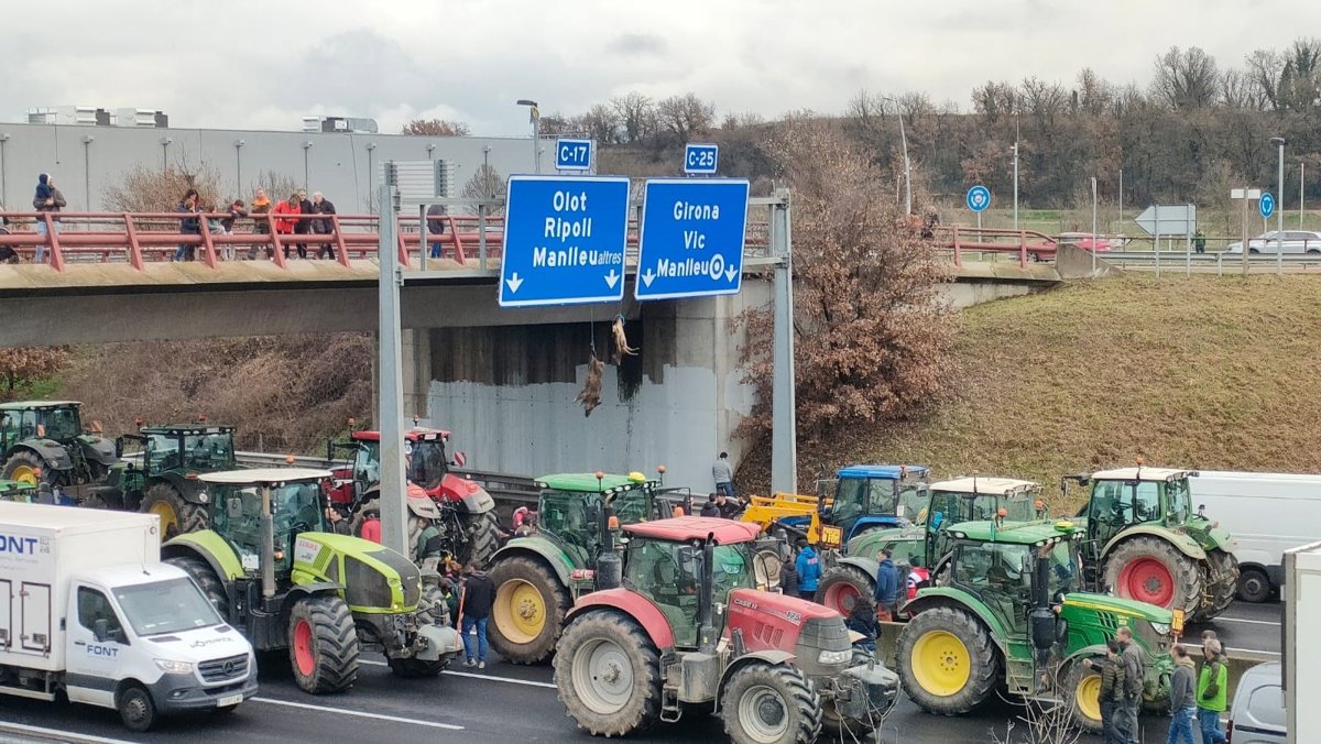 La jornada reivindicativa ha comenzado sobre las 9.30 horas con una marcha lenta de tractores para "colapsar" la C-25, conocida como Eje Transversal, partiendo de Riudellots de la Selva (Girona), Manresa (Barcelona), Cervera y Lleida, y sobre las 12 horas se ha leído un manifiesto en Cervera (Lleida) y Gurb.