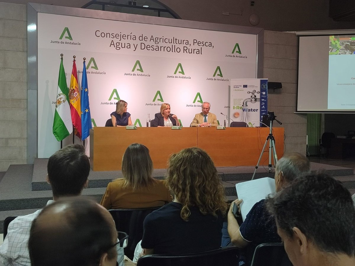 La Consejería de Agricultura, Pesca, Agua y Desarrollo Rural potencia el uso de agua regenerada para la agricultura andaluza a través del proyecto europeo 'I-ReWater. Gestión sostenible de los recursos hídricos en la agricultura de regadío en el espacio Sudoe'. Una iniciativa liderada por Andalucía, en la que participan 16 entidades procedentes de España, Andorra, Portugal y Francia, que ha sido aprobado en la convocatoria Interreg Sudoe 2021-2027. Este proyecto cuenta con un presupuesto de más de 2,2 millones de euros financiados en un 75 por ciento por el Fondo Feder y su principal objetivo es lograr fórmulas para la gestión sostenible de los recursos hídricos.