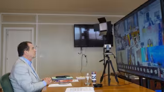 El presidente de la FEMP, Abel Caballero, en la reunión de este lunes, celebrada telemáticamente. - FEMP