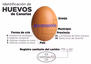 ASAGA Canarias recuerda a los consumidores que es importante saber identificar en el etiquetado del cartón un código numérico que aparece dentro de un círculo en el que se debe leer el número 38 o 35 junto a las siglas TF (provincia de Santa Cruz de Tenerife) o GC (provincia de Las Palmas) para asegurarse de que el huevo es de origen canario y no caer en el "engaño premeditado".