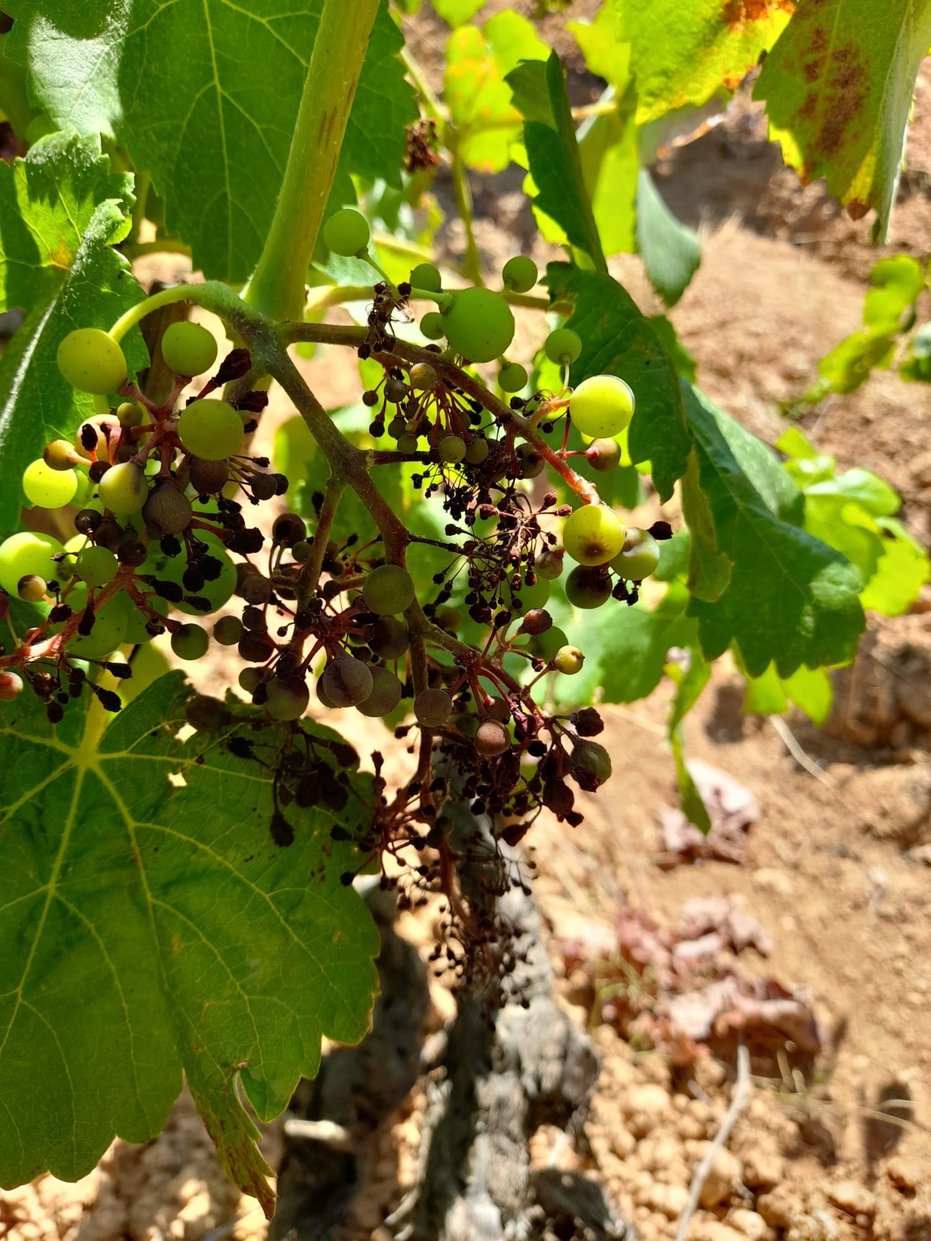 Un racimo de Utiel-Requena destrozado por el hongo del mildiu. - AVA