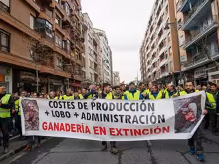 Manifestantes se concentran durante la tercera jornada de protestas de los ganaderos y agricultores para pedir mejoras en el sector, a 8 de febrero de 2024, en Logroño, La Rioja (España). Agricultores y ganaderos de toda España han sacado sus tractores a - José Sánchez - Europa Press