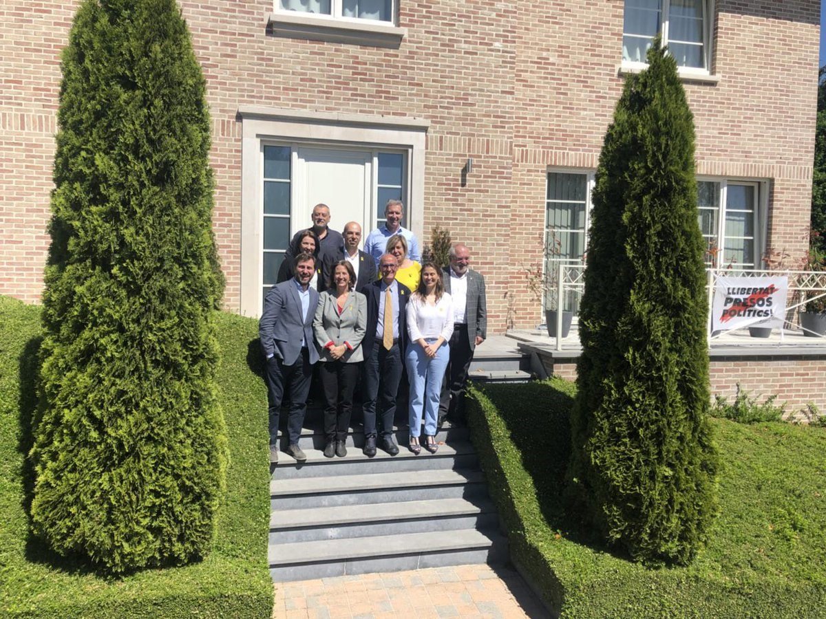 Archivo - Toni Comín, Meritxell Serret, Lluís Puig, Elisenda Paluzie y otros miembros de la ANC en la casa de Puigdemont en Waterloo - ANC - Archivo