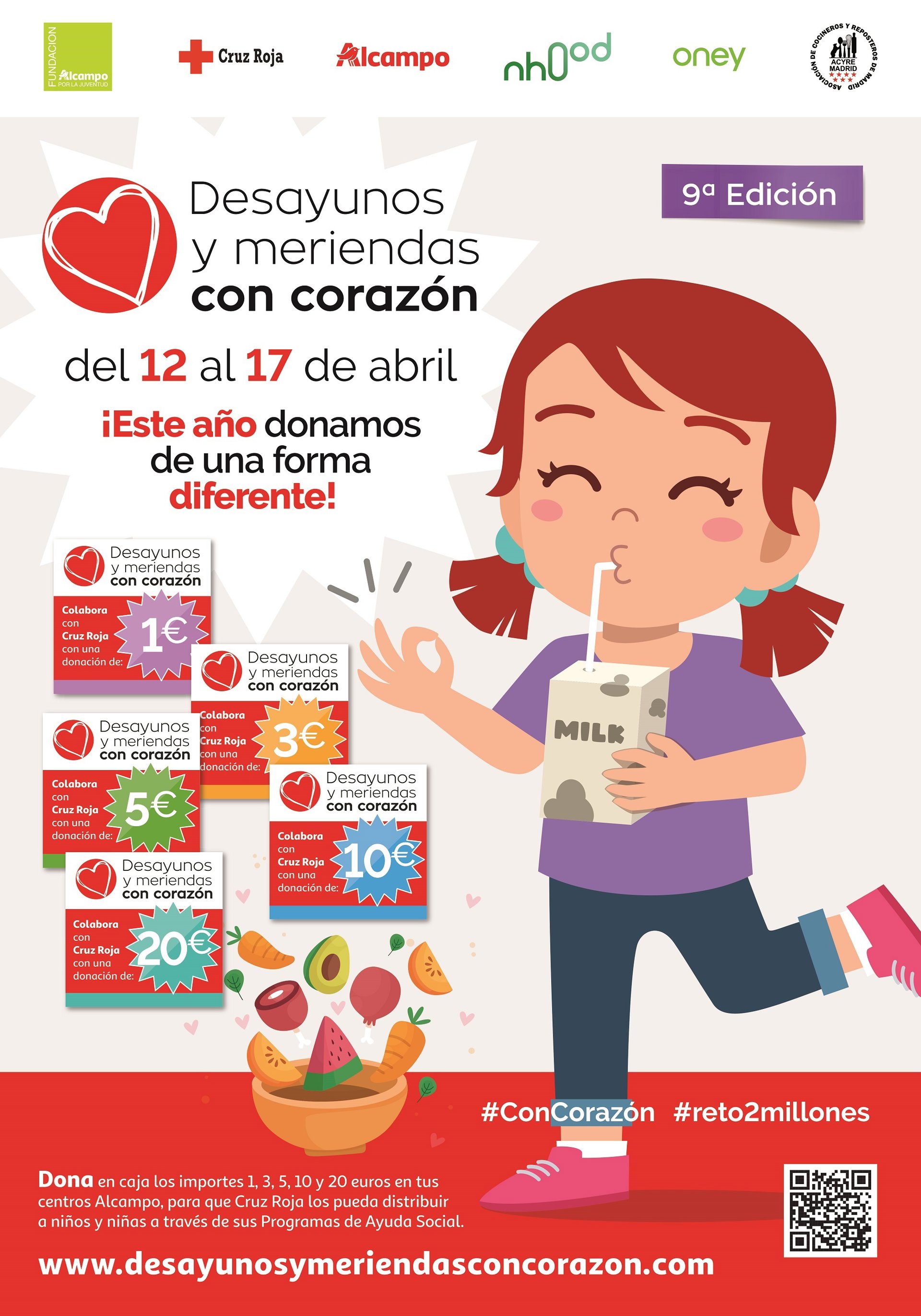 'Desayunos y Meriendas #ConCorazón' es una iniciativa de Cruz Roja, Alcampo, Nhood, Oney y la Asociación de Cocineros y Reposteros (ACYRE Madrid). Su objetivo es trabajar en alianza, como señala el Objetivo de Desarrollo Sostenible 17 de Naciones Unidas, "revitalizando la alianza mundial para el desarrollo sostenible mediante la colaboración público - privada". Además, se pretende "implicar a la sociedad civil para mejorar la calidad de vida de los niños y niñas que viven en situaciones de dificultad".