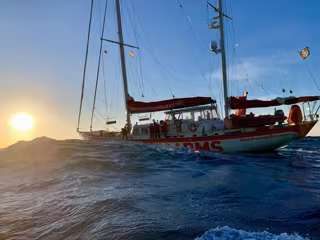 El barco 'Astral', de la ONG Proactiva Open Arms, regresa ya a Badalona (Barcelona) tras entregar medicamentos, mantas y comida a los más de 300 migrantes a bordo del 'Open Arms' que fueron rescatados en aguas del Mediterráneo central el pasado viernes 21 de diciembre.
