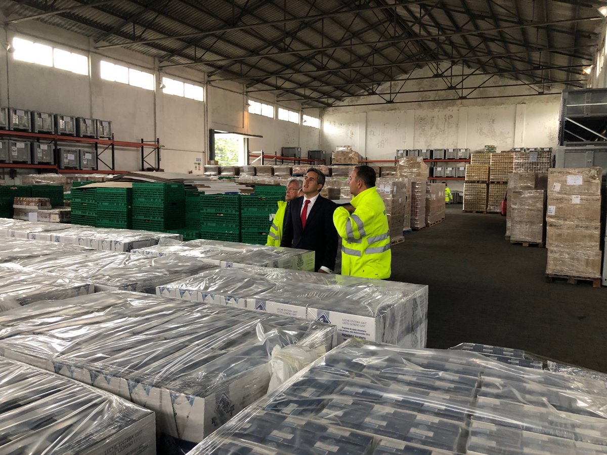 El delegado del Gobierno en Cantabria, Pablo Zuloaga, ha visitado este lunes las naves que el Banco de Alimentos tiene en Tanos, donde se han recepcionado la mitad de los 330.974 kilogramos que la segunda fase del Programa de ayuda alimentaria 2018 del Ministerio de Agricultura, Pesca y Alimentación ha consignado para Cantabria.