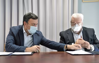 El presidente de la Diputación, Valentín González Formoso, y el responsable del Banco de Alimentos de Santiago, José Pita, han firmado este viernes el convenio, en un acto en el que Formoso ha destacado "la labor social fundamental" que desempeña la entidad, "sobre todo durante este periodo de crisis sanitaria y económica sin precedentes".