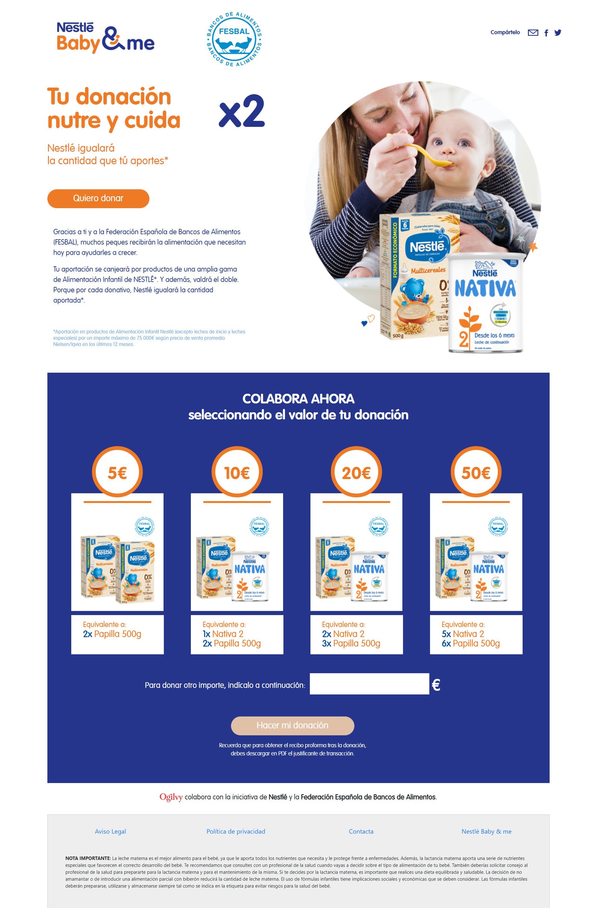 Nestlé ha animado a sus consumidores y empleados a hacer aportaciones económicas, con el compromiso de igualar su valor y canjear la cantidad total recaudada por alimentos infantiles de la marca, que se distribuirán a familias en riesgo de pobreza de toda España.