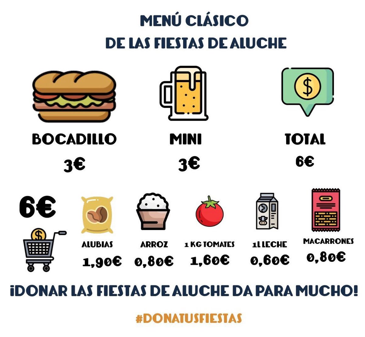 Así, los 3 euros del bocadillo de alguno de los puestos o el mini de cerveza por el mismo precio se transformarán en una bolsa de comida con alubias (1,90 euros), arroz (0,80 euros), un kilo de tomates (1,60 euros), un litro de leche (0,60 euros) y macarrones (0,80 euros). En las redes sociales de esta iniciativa se puede encontrar la cuenta bancaria donde ingresar esta donación solidaria.