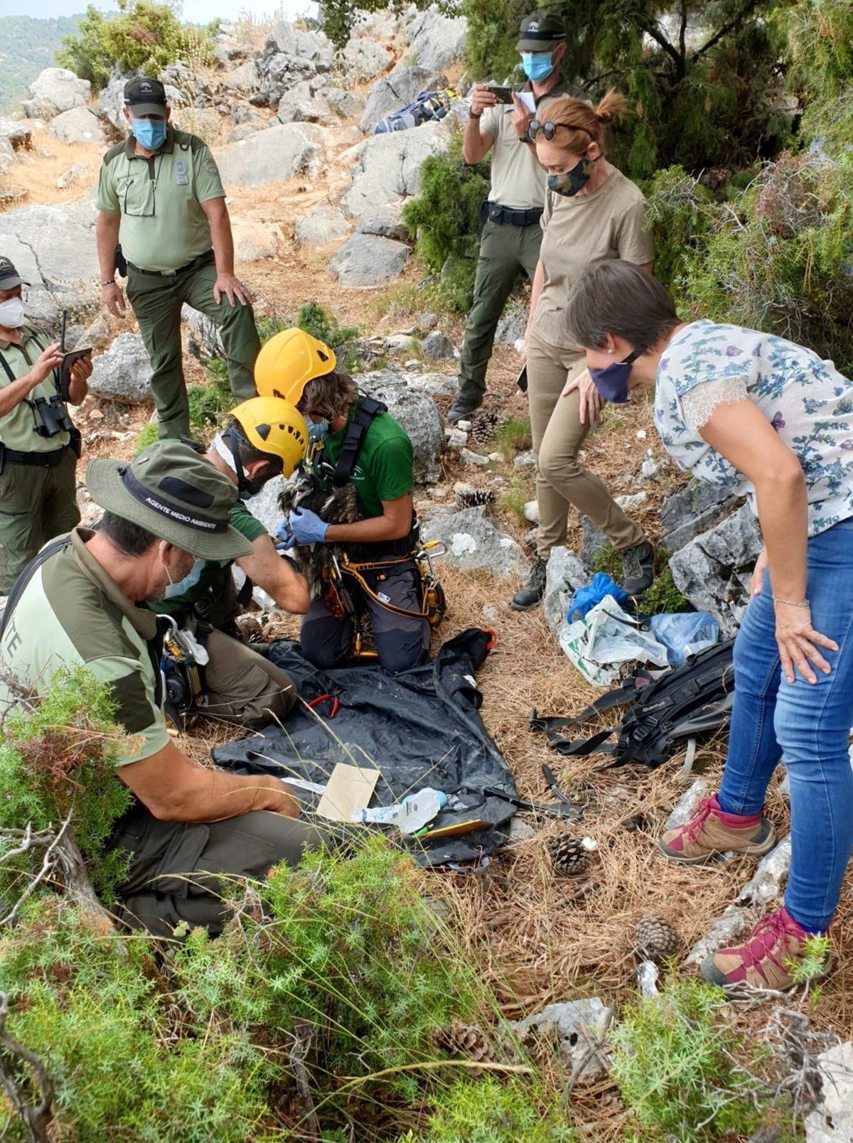 La delegada territorial del área, Soledad Aranda, presenció las dificultosas tareas de reconocimiento, exploración, marcado y supervisión de los alimoches, que forman parte del Plan de Recuperación de Aves Necrófagas y la Estrategia Andaluza Contra el Veneno, que tan buenos resultados está ofreciendo.