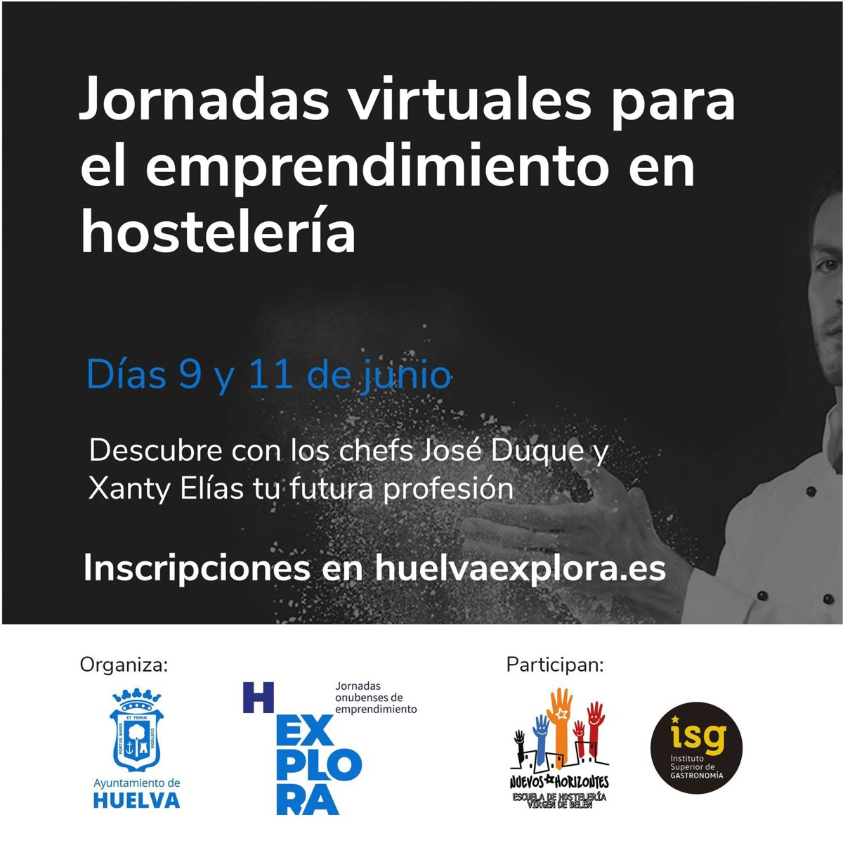 El Ayuntamiento de Huelva, a través de la Concejalía de Empleo, Desarrollo Económico y Planificación Estratégica, va a promover las I Jornadas Virtuales para el Emprendimiento en Hostelería. Una actividad encaminada a impulsar iniciativas emprendedoras en la capital en el ámbito de la gastronomía, que va contar la participación de la Escuela de Hostelería Virgen de Belén y el Instituto Superior de Gastronomía, así como con los chefs onubenses Xanty Elías y José Duque.