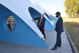 Terminado el montaje del soporte, se llevó a cabo la instalación de las nuevas lonas textiles, así como de los motores para el inflado de la cámara de los diferentes paños.