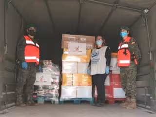 Para ello, están poniendo a disposición medios materiales diversos, como vehículos para el transporte de material y alimentos, además de equipos de campaña (contenedores de todo tipo, cocinas, duchas, literas, aljibes y cisternas).