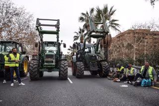 Agricultores y tractores durante una concentración en la avenida Germans Machado de Valencia, a 6 de febrero de 2024, en Valencia, Comunidad Valenciana (España). Agricultores y ganaderos de toda España han sacado sus tractores a las carreteras desde est - Rober Solsona - Europa Press