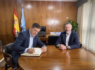 El delegado del Gobierno, José Ramón Gómez Besteiro, se reúne con el presdiente de la Fegamp, Alberto Varela, en la sede del ente municipalista - DELEGACIÓN DEL GOBIERNO