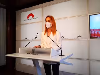 La líder de los comuns en el Parlament, Jéssica Albiach, en rueda de prensa en el Parlament - EUROPA PRESS