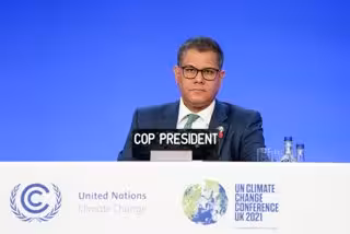 12 November 2021, United Kingdom, Glasgow: Cop26 President Alok Sharma attends a plenary session on the final day of the United Nations Climate Change Conference (COP26). Photo: Jane Barlow/PA Wire/dpa - Jane Barlow/PA Wire/dpa