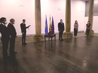El acto ha estado presidido por Adrián Barbón y han asistido el resto de miembros del Ejecutivo, todos ataviados con mascarillas y guardando la pertinente distancia de seguridad. Después del juramento, todos los miembros del Consejo de Gobierno se han dirigido a la sala de reuniones del Ridea.