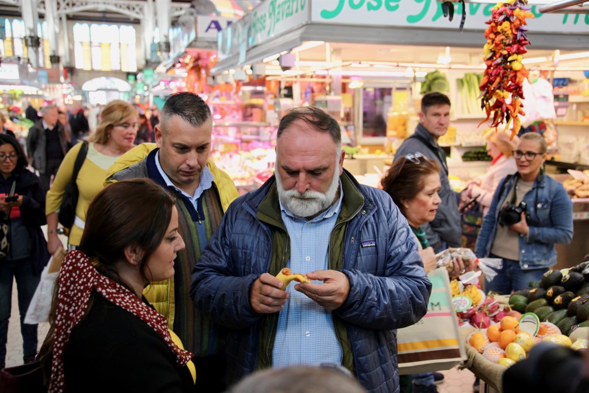 Durante su visita a la capital del Turia, el chef también ha mantenido un encuentro con el presidente de la Generalitat, Ximo Puig, que le ha entregado la distinción de la marca 'L'Exquisit Mediterrani'. José Andrés, además, ha visitado el Mercado Central de la ciudad.