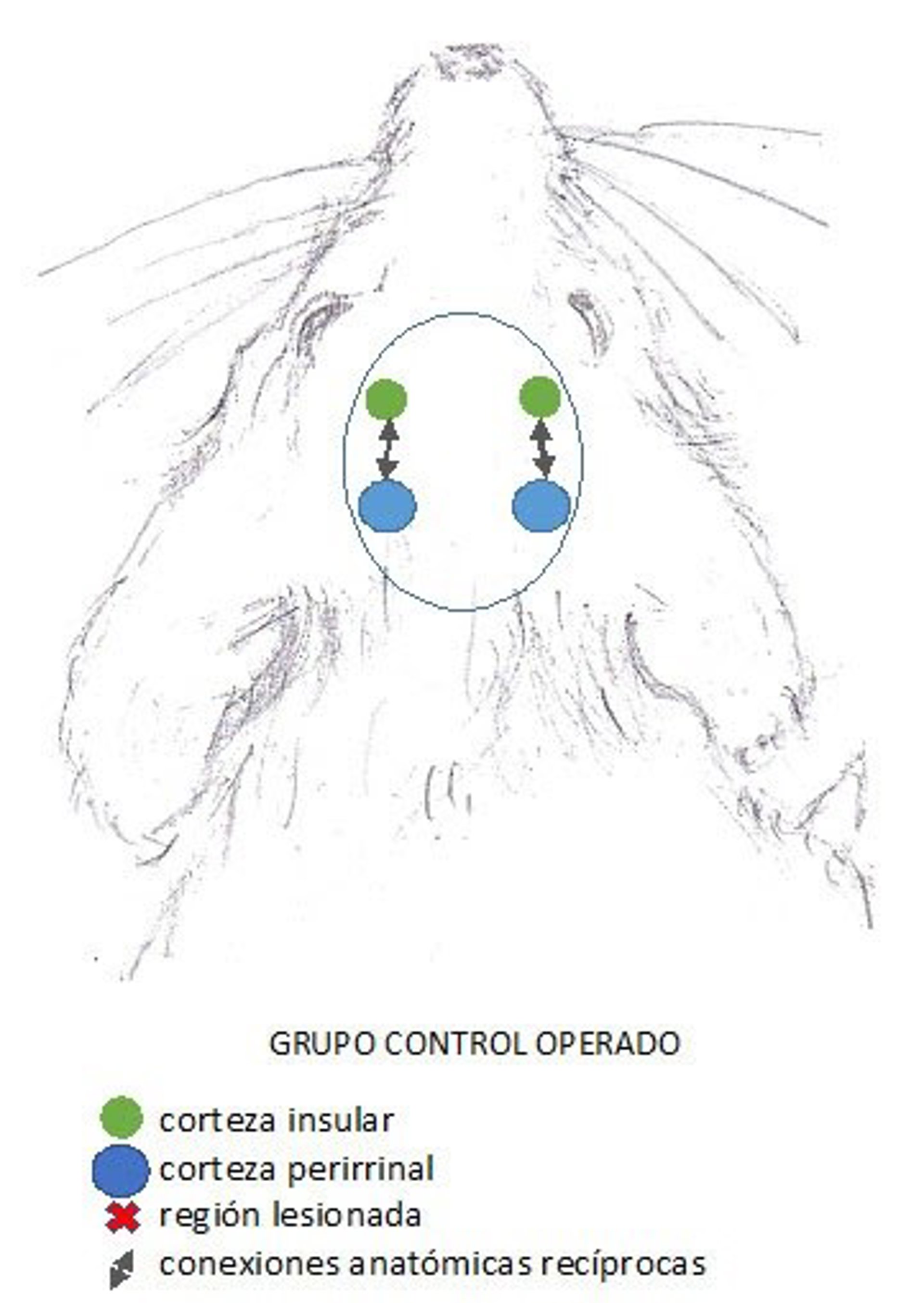 Para ello emplearon 32 ratas, divididas en tres grupos: un primer grupo con lesiones contralaterales (animales lesionados en la corteza perirrinal de un hemisferio y la corteza insular del otro hemisferio); un segundo grupo con lesiones ipsilaterales (animales lesionados en las cortezas perirrinal e insular del mismo hemisferio), y un grupo de control operado (animales operados del mismo modo que los de los grupos anteriores, a los que no se inyectó intracerebralmente ninguna neurotoxina). Este último grupo permitió examinar el efecto de los tratamientos anteriores.
