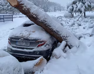 Coche atrapado por la nieve y un árbol en Getafe - PP GETAFE