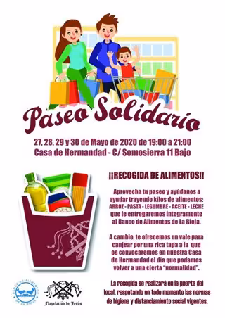 Consiste "en aprovechar el paseo que podemos realizar por las tardes para acercarse a la Casa de Hermandad de esta Cofradía, en la calle Somosierra 11, bajo, de Logroño, para donar alimentos y productos no perecederos -arroz, pasta, legumbre, aceite y leche, principalmente- que posteriormente serán entregados al Banco de Alimentos de La Rioja".