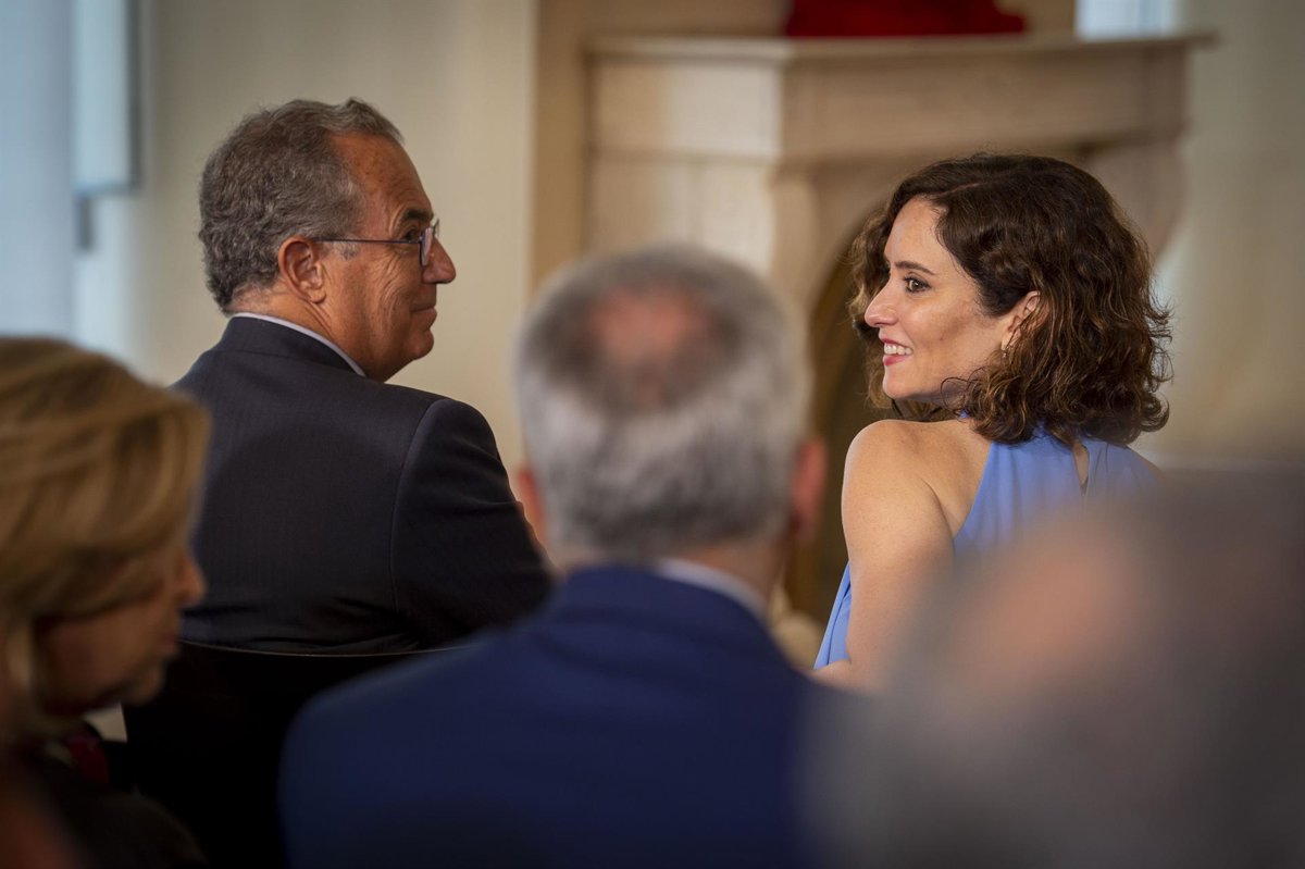 Archivo - El vicepresidente, consejero de Educación y Universidades de la Comunidad de Madrid, Enrique Ossorio (i) y la presidenta de la Comunidad de Madrid, Isabel Díaz Ayuso (d), en el acto de entrega de la Medalla de Oro al chef José Andrés, en la Re - Juan Barbosa - Europa Press - Archivo