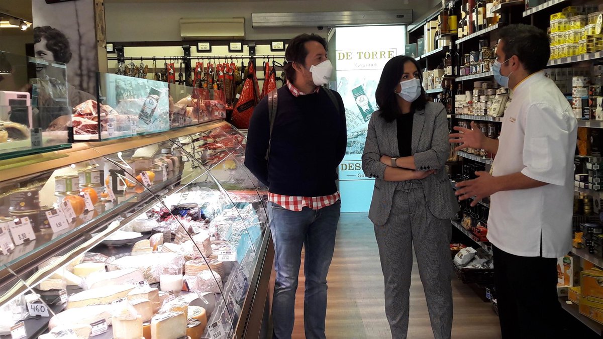 La concejala de Economía, Hacienda, Comercio y Turismo, Esmeralda Campos, acompañada por el presidente de la Federación de Empresarios de Comercio de La Rioja (FER Comercio), Fernando Cortezón, ha visitado esta mañana los comercios De Torre Gourmet y Ferretería Casado, dos de los establecimientos que participan en la campaña de 'Bono Comercio' para dinamizar el comercio local logroñés.