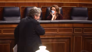 El portavoz de Transición Ecológica de Unidas Podemos en el Congreso, Juantxo López de Uralde (i), y la vicepresidenta cuarta y ministra para la Transición Ecológica, Teresa Ribera, durante una sesión plenaria en la Cámara Baja, en Madrid (España), a 2 - EUROPA PRESS/E. Parra. POOL - Europa Press