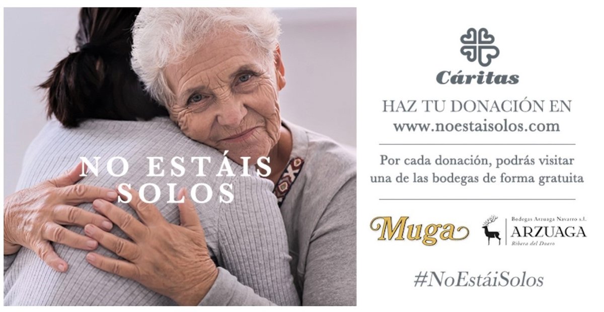 Bodegas Arzuaga y Bodegas Muga, dos de las bodegas más emblemáticas de España, se unen para sumar fuerzas junto a Cáritas y apoyar a las personas mayores en la crisis sanitaria que se está viviendo en el país, algo que harán a través de la campaña 'No estáis solos'.