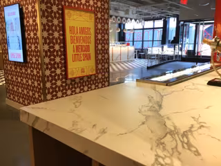La aplicación de estas superficies han estado guiadas bajo el proyecto de diseño de 'Mercado Little Spain' correspondiente al estudio de arquitectura de Juli Capella.