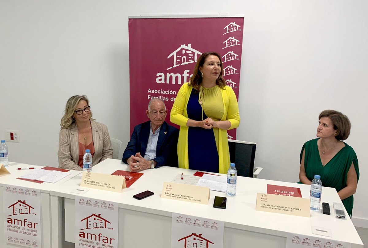 Junto a la consejera de Agricultura, también han tomado la palabra el alcalde de Roquetas de Mar, Gabriel Amat y las presidentas de Amfar Andalucía, Adoración Blanque, y de Amfar España, Lola Merino.